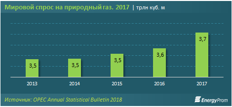 По прогнозам аналитиков, мировой спрос на природный газ будет расти. К примеру, Аднан Амин, член Международного комитета по присуждению премии «Глобальная энергия», генеральный директор Международного агентства по возобновляемым источникам энергии (IRENA), спрогнозировал резкое снижение спроса на нефть и уголь к 2050 году, в то время как природный газ, по его мнению, станет самым востребованным источником ископаемого топлива. Напомним, по данным статистического бюллетеня ОПЕК, показатель уже увеличился с 3,5 трлн куб. м в 2013 году до 3,7 трлн куб. м в 2017-м.
