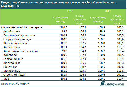 Для сравнения, в среднем по РК фармацевтическая продукция подорожала на 7%.