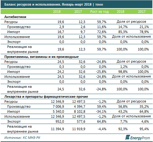 В то же время, рынок антибиотиков все еще далек от самообеспечения — спрос перекрыт импортом на 85,3%. Более того, витамины в РК практически не производятся, фармацевтические препараты этой группы на отечественном рынке — исключительно привозные.
