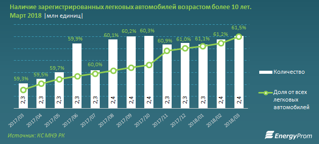 В итоге, доля авто-«старичков» возрастом более 10 лет за год выросла с 59,3% до 61,5%.