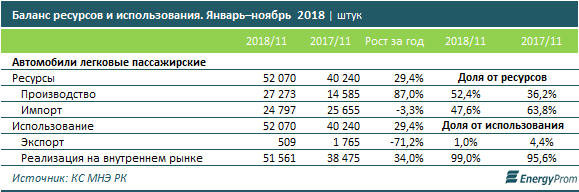Заметим, по итогам 11 месяцев прошлого года казахстанский автопром перекрыл уже 52,4% спроса, против всего 36,2% в прошлом году. На фоне стремительного подъёма внутреннего производства импорт, напротив, сократился на 3,3%. Внутренние продажи легковых автомобилей выросли год-к-году на треть.