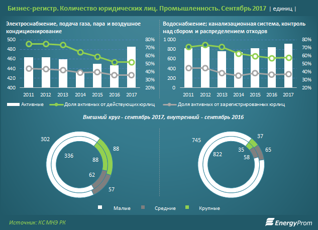 В сегменте водоснабжения и канализации рост работающих предприятий — 8% за год, до 915, в то же время число малых компаний увеличилось на 10,3%.