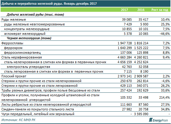 В натуральном выражении добыча железной руды выросла на 10,4%.