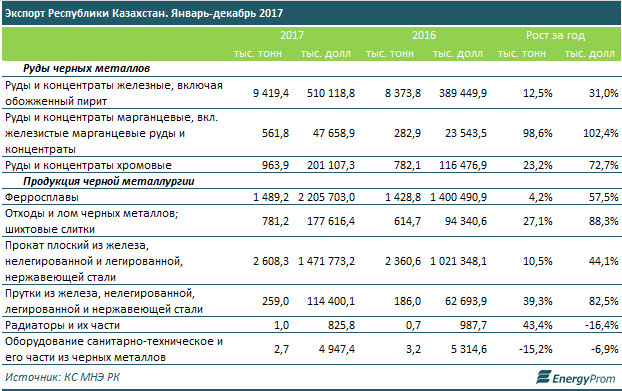В перерабатывающем секторе ферросплавов экспортировано на 4,2% больше, чем годом ранее, в тоннах, и сразу на 57,5% — в деньгах, плоского проката — на 10,5% в тоннах, и на 44,1% в деньгах, лома черного металла и шихтовых слитков — на 10,5% в натуральном выражении и на 88,3% — в денежном.