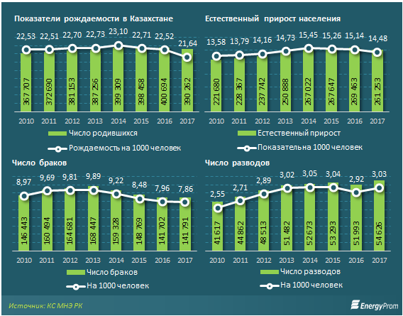 Этот посыл более чем актуален. Напомним, показатели рождаемости сокращались уже три года подряд и по итогам 2017-го составили всего 21,6 родившихся на 1000 человек. Также три года подряд сокращался и естественный прирост, составив к началу прошлого года всего 14,5 человек на тысячу жителей РК.