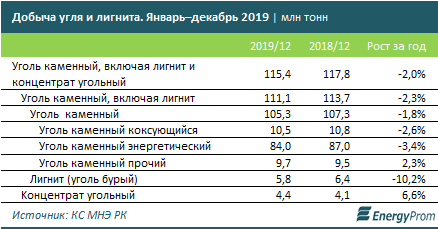 В натуральном выражении добыча каменного угля, включая лигнит и угольный концентрат, сократилась на 2% и составила 115,4 млн тонн.