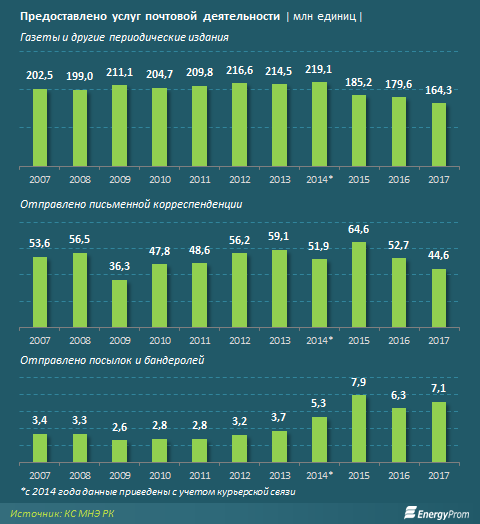По данным оператора, в 2016 году физлицами в Казахстане были отправлены через почту в зарубежные страны 118 тыс. товаров, в 2017 году — 134 тыс. Объем e-commerce в РК в 2016 году составил около 1 млрд долл США.