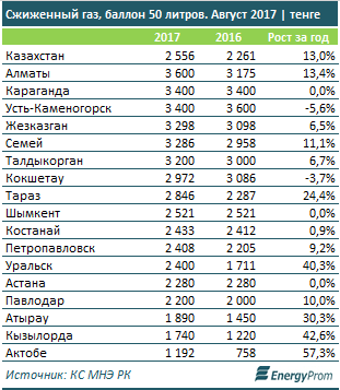 Сжиженный газ в баллонах подорожал сразу на 13% за год, до 2556 тг за 50 литров.