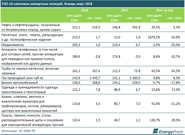 Ключевые импортные позиции — нефтепродукты (не сырые) — 4,3% от завезенной продукции, полиграфия — 2,9%, медикаменты — 2,8%, и телефоны — 2,6%.