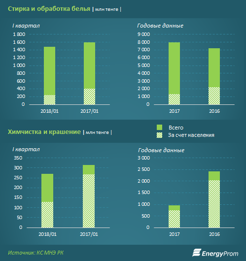 За счет населения было оказано 16% услуг по стирке белья, и 47% услуг химической чистки.
