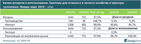 Напомним, за I квартал текущего года было использовано 1444 тракторов, из них 1440 было реализовано на внутреннем рынке (годовой рост +97%) и 4 — отправлено на экспорт. Несмотря на более чем трёхкратный рост производства, основная доля всё ещё приходится на импорт: 90,6%.