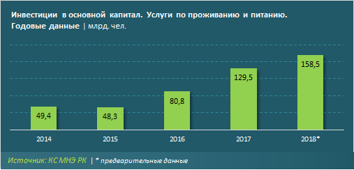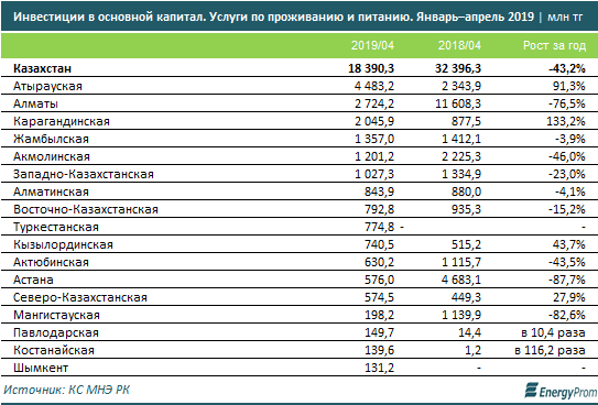 По итогам 4 месяцев в сферу HoReCa проинвестировали всего 18,4 миллиарда тенге — сразу на значительные 43,2% меньше, чем годом ранее.