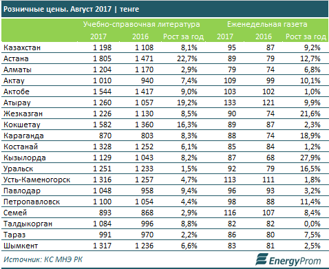 Печатная продукция подорожала: за учебно-справочную литературу казахстанцы платят на 8% больше, чем годом ранее, за газеты — на 9%.
