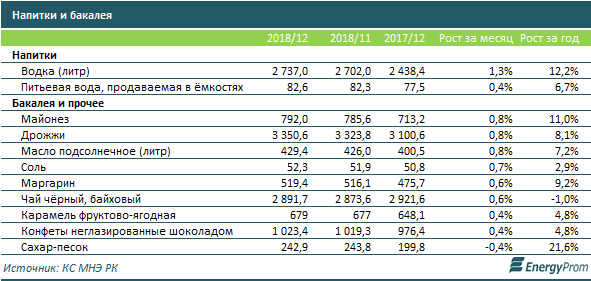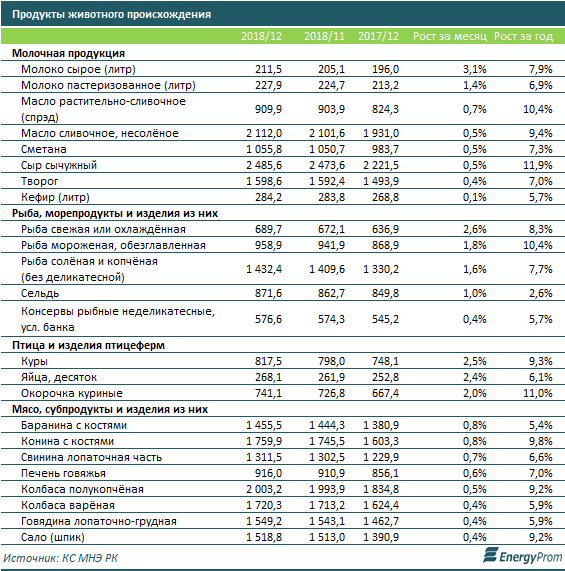 Среди товаров животного происхождения растут цены на молочную продукцию: так, сырое молоко подорожало за декабрь на 3,1%, сливочный спрэд — на 0,7%, масло — на 0,5%.