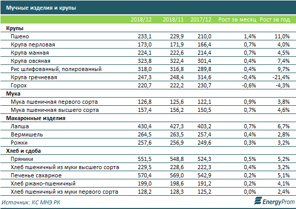 Среди круп на 1,4 % выросло в цене пшено, подорожала мука как первого (на 0,9% за месяц), так и высшего (на 0,7%) сорта.