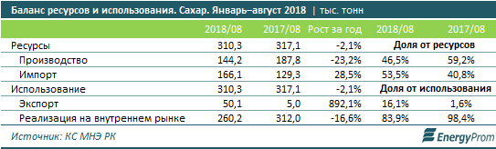 На фоне спада производства активизировался импорт в секторе: объём ввозимого в страну сахара вырос сразу на 28,5% за год по итогам января–августа 2018-го. Это уже 53,5% от спроса, против всего 40,8% годом ранее.