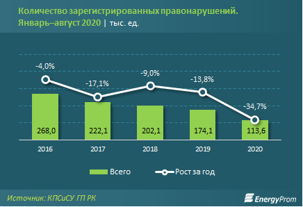 Для справки: в январе–августе 2019 года было зарегистрировано 174,1 тыс. правонарушений — на 13,8% меньше, чем в предыдущем году.