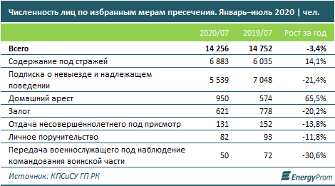 Среди избранных мер пресечения 48,3% пришлось на содержание под стражей (6,9 тыс. человек — сразу на 14,1% больше, чем годом ранее).