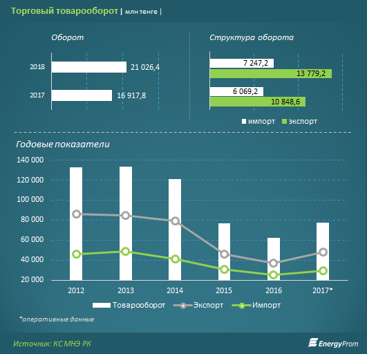 Казахстан занимает активную позицию в международной торговле: экспортное направление выросло сразу на 27% за год, импорт увеличился на 19%