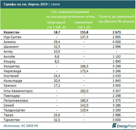 Заметим: АО «КазТрансГаз» реализует газ на внутреннем рынке по цене ниже себестоимости, тем самым поддерживая отечественных потребителей. С 1 января снижены предельные оптовые цены на товарный газ — в пределах 17,5% в зависимости от региона. «Это позволило снизить конечные цены на электроэнергию и тепло практически во всех газифицированных регионах страны. В итоге на сегодняшний день газ, реализуемый на внутреннем рынке, продается ниже себестоимости, что является сдерживающим фактором для развития газовой отрасли. За период с 2014 по 2018 год национальный оператор в лице «КазТрансГаз» понёс убытки на внутреннем рынке около 200 миллиардов тенге. Это огромные цифры, о которых население должно знать», — сказал вице-министр энергетики Магзум Мирзагалиев в ходе круглого стола в Мажилисе Парламента РК. Он напомнил, что цены на газ для внутреннего рынка утверждаются ежегодно в правительстве.