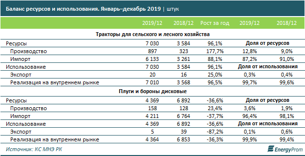 В результате подобной стратегии, как мы уже писали, 60% субсидий в денежном выражении в 2019 году, по данным МСХ РК, ушло на импортную технику, что делает импорт в секторе более простым и привлекательным, чем реальное развитие местного производства. В то же время в самом Казахстане линейки по производству тракторов «Беларус» сегодня есть сразу у трёх компаний. При этом за весь прошлый год в целом в стране выпустили лишь 897 тракторов всех брендов. То есть на каждое отдельно взятое производство непосредственно тракторов «Беларус» приходится совсем незначительное количество машин, что ожидаемо в условиях давления импорта, пользующего двойной поддержкой. По факту рынок страны по-прежнему принадлежит импортёрам.