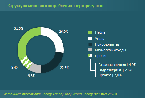 Парниковые газы, и прежде всего углекислый газ, формируют умеренный климат на нашей планете: без них средняя температура была бы -18oC. Но значительный рост количества углекислого газа за счёт сжигания ископаемого топлива (угля, нефти и газа) приводит к негативным последствиям — в частности, таким, как потепление климата. Даже с учётом развития возобновляемых источников на долю угля и углеводородного топлива до сих пор приходится до 81% совокупного потребления энергии.