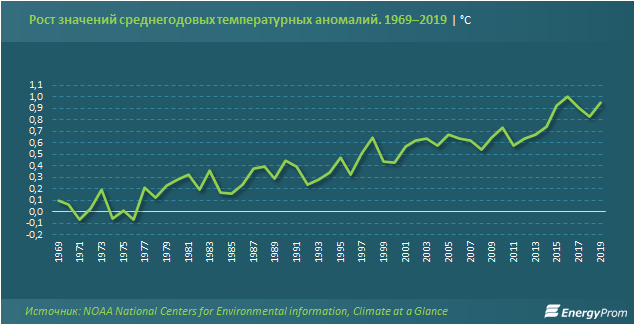 2019 год стал вторым самым тёплым годом в самом тёплом десятилетии за всю историю метеонаблюдений на планете