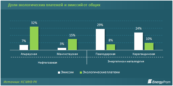 Именно кратное увеличение экологических платежей должно стать основным стимулом внедрения новых технологий, так как доля экологических налоговых поступлений в структуре ВВП по итогам 2018 года, по данным ОЭСР, составляют всего 2%; при этом, согласно данным Комитета статистики, общий объём затрат на охрану окружающей среды составляет всего 0,5% от ВВП Казахстана.