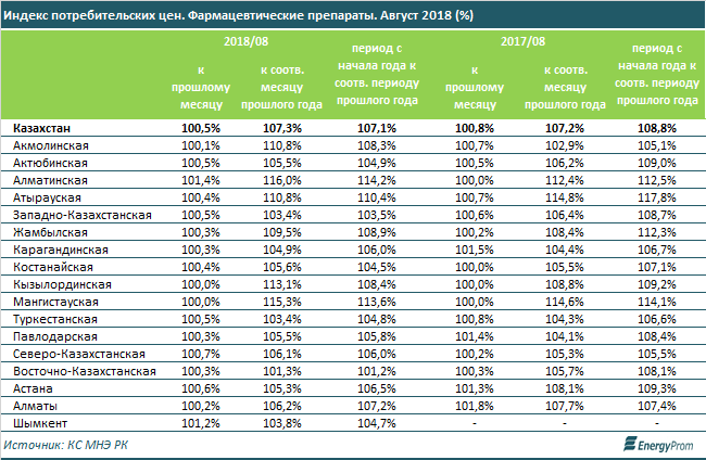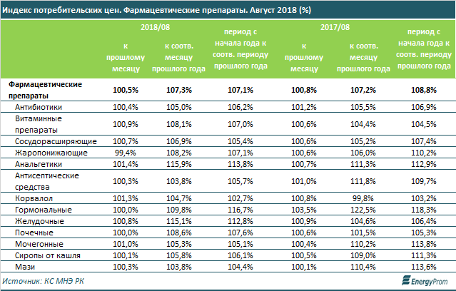 Цены на фармацевтические препараты по итогам августа выросли на 0,5% за месяц и на 7,3% год-к-году.