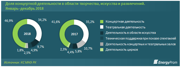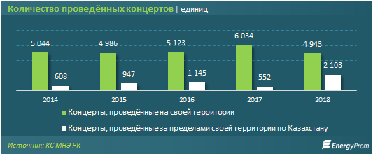 Заметим, концертная деятельность пользуется спросом в РК. Количество проведённых в 2018 году концертов выросло на 7%, до 7,1 тысячи.