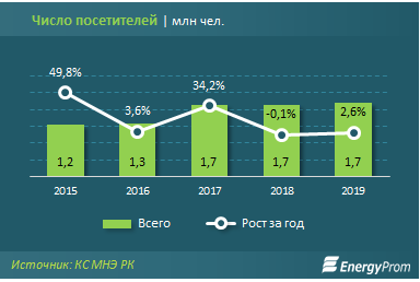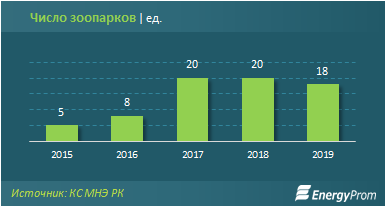 За 2019 год казахстанские зоопарки посетили 1,7 млн человек, годовой рост составил 2,6%. Для посетителей было проведено более 4 тысяч экскурсий и организовано 30 выставок.