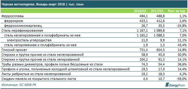 В сегменте переработки рост значительно выше: так, объемы выпуска продукции черной металлургии подскочили сразу на 17,7% год-к-году, до 453 млрд тг. Наибольшие объемы сконцентрированы в Карагандинской (50,7% от РК), Павлодарской (25,2%) и Актюбинской (16,7%) областях.