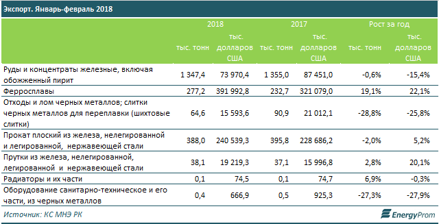 Экспорт железных руд год-к-году сократился по итогам января-февраля 2018 на 0,6% в тоннах и на 15,4% в денежном выражении.