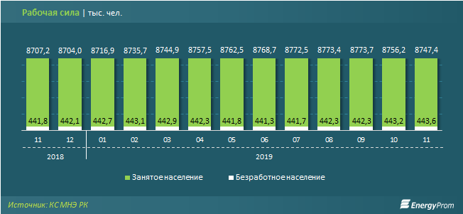 К декабрю прошлого года экономически активное население Казахстана (рабочая сила) достигло 9,19 млн человек — на 0,1% меньше, чем месяцем ранее, однако на 0,5% больше, чем год назад.