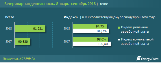 Заработная плата специалистов, занятых ветеринарной деятельностью, по итогам 9 месяцев составляла 91,2 тысячи тенге — на 0,7% больше, чем в аналогичном периоде годом ранее.