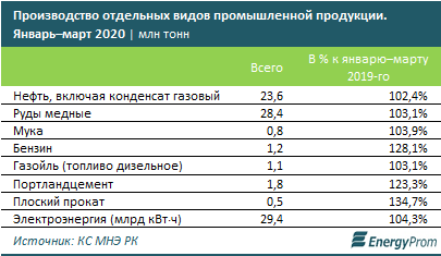 В первом квартале текущего года индекс промышленного производства к аналогичному периоду 2019-го составил 105,8%. Даже в проблемном марте объёмы выпуска в промышленном секторе показали рост к марту 2019 года на 5,9%. По итогам января–марта увеличилась добыча сырой нефти, природного газа и металлических руд. Выросли объёмы производства продуктов питания, табачных изделий, нефтепереработки, фармацевтических продуктов, металлургической промышленности и машиностроения. При этом снизилось производство продуктов химической промышленности.