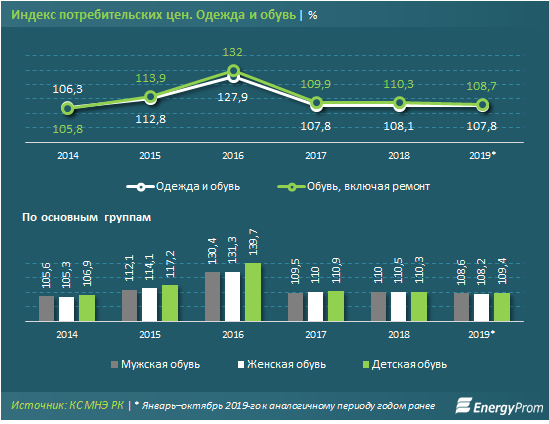 По итогам десяти месяцев обувь в РК подорожала на 8,7% к январю–октябрю 2018-го.