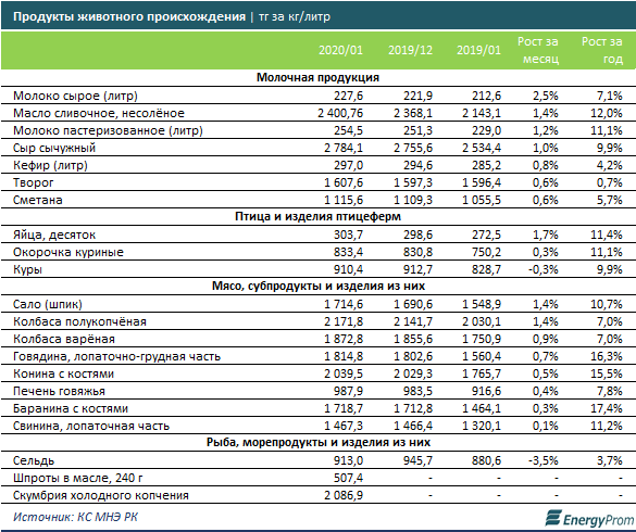Тем временем в сегменте продуктов животного происхождения в рознице за месяц заметно подорожали сырое молоко (на 2,5% к декабрю), яйца (на 1,7%), сливочное масло, сало и полукопчёная колбаса (на 1,4%), пастеризованное молоко (на 1,2%).
