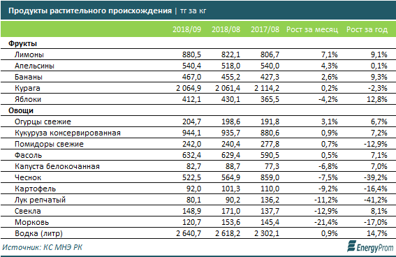 Среди фруктов заметно выросли в цене цитрусовые — лимоны (сразу на 7,1% за месяц) и апельсины (плюс 4,3%). Также подорожали бананы — на 2,6% за сентябрь.