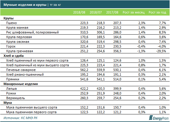 Среди мучных, хлебных и макаронных изделий значительного роста цен (более чем на 1%) за месяц не зафиксировано.