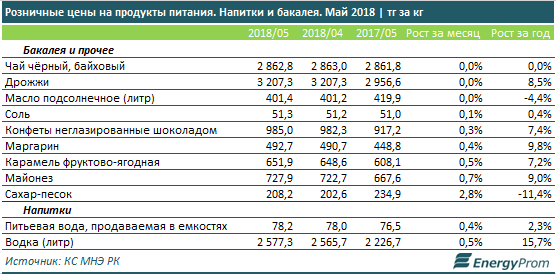 Кроме того, вырос в цене сахар — на 2,8% за месяц. В то же время, в годовой динамике цены на сахар все еще ниже, чем в мае 2017 (на 11,4%).