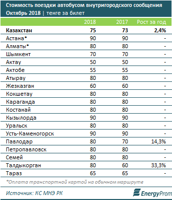По итогам октября 2018 года стоимость внутригородского автобусного проезда выросла в среднем по стране на 2,4% за год.