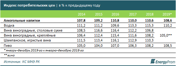 Напомним, акцизы на алкогольную продукцию (кроме коньяка, бренди, вин, виноматериала, пива и пивного напитка) в 2019 году выросли до 2550 тенге на литр стопроцентного спирта.