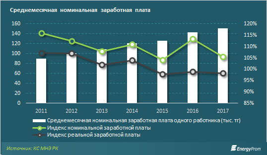 Наибольший рост зарплат наблюдался в промышленных регионах: Атырауской области (на 11,3%, до 282,6 тыс. тг, реальный рост с учетом инфляции — на 5,1%) и Карагандинской области (на 11,1%, до 143,9 тыс. тг, реальный рост — плюс 4,8% год-к-году).