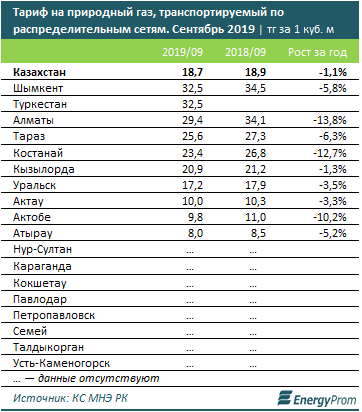 В октябре в Казахстане начинается отопительный сезон. В то время как в жилых домах с центральным отоплением, которое присутствует преимущественно в городах, тариф сократился на 14% и составил 3440 тенге за 1 Гкал, в регионах отопление домов происходит за счёт угля и дров или, при наличии, природного газа, транспортируемого по распределительным сетям.