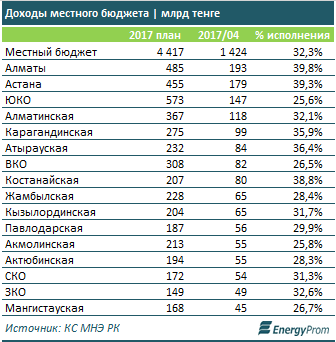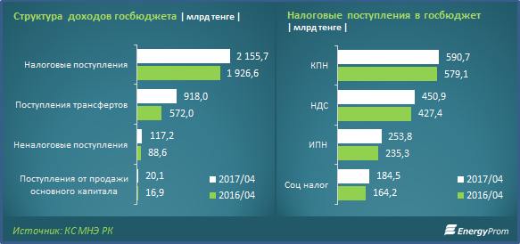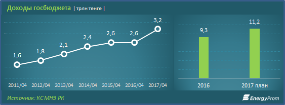 Согласно скорректированному плану, поступления в госбюджет увеличатся на 21% и на конец года составят 11,2 трлн тенге. Т.е. за четыре месяца года было исполнено 29% плана.