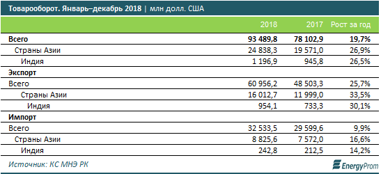 Позитив в отношениях Казахстана с Индией: экспортные поставки увеличились на 30% за год, импорт вырос на 14%