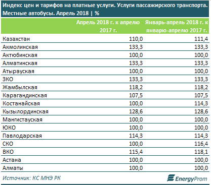 Цены на автобусные перевозки по городу за год выросли в среднем по Казахстану на 10%.