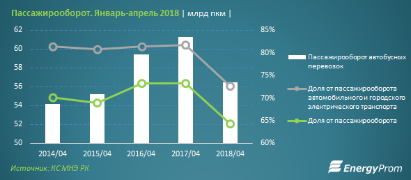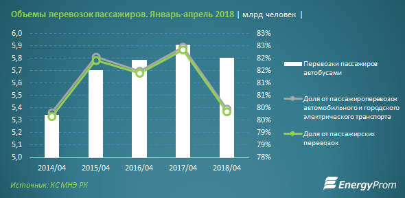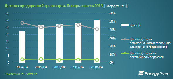 Его доля от автомобильного и городского электрического транспорта составила 72,7%, от всей транспортной отрасли РК — 64,3%.
