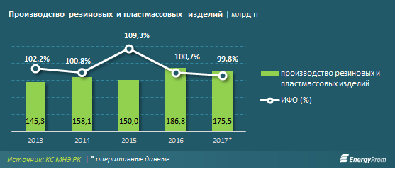 За январь-июль компании РК выпустили резиновых и пластмассовых изделий на 98,9 млрд тг — на 7,5% больше, чем годом ранее. Рост физического объема составил 4,2%.